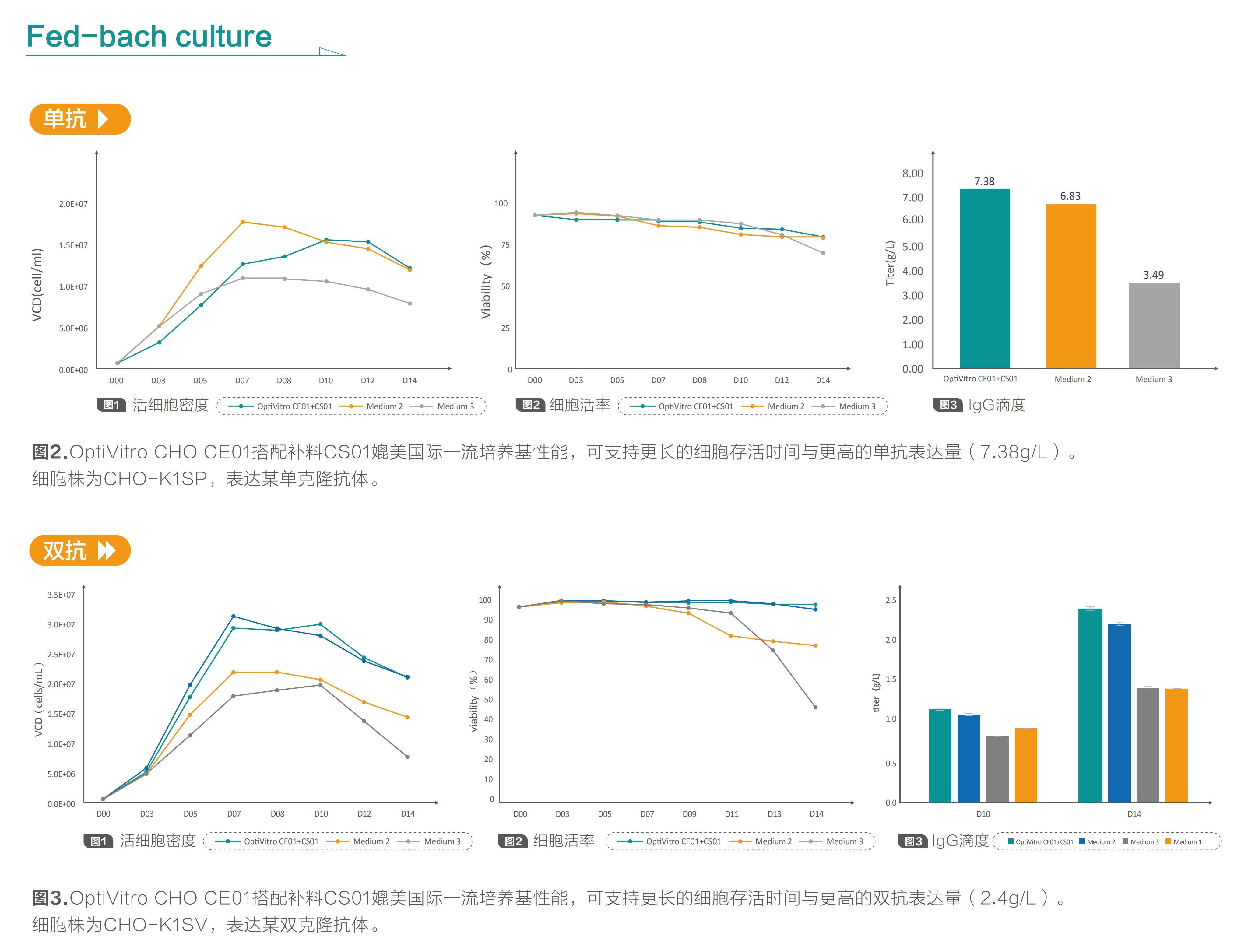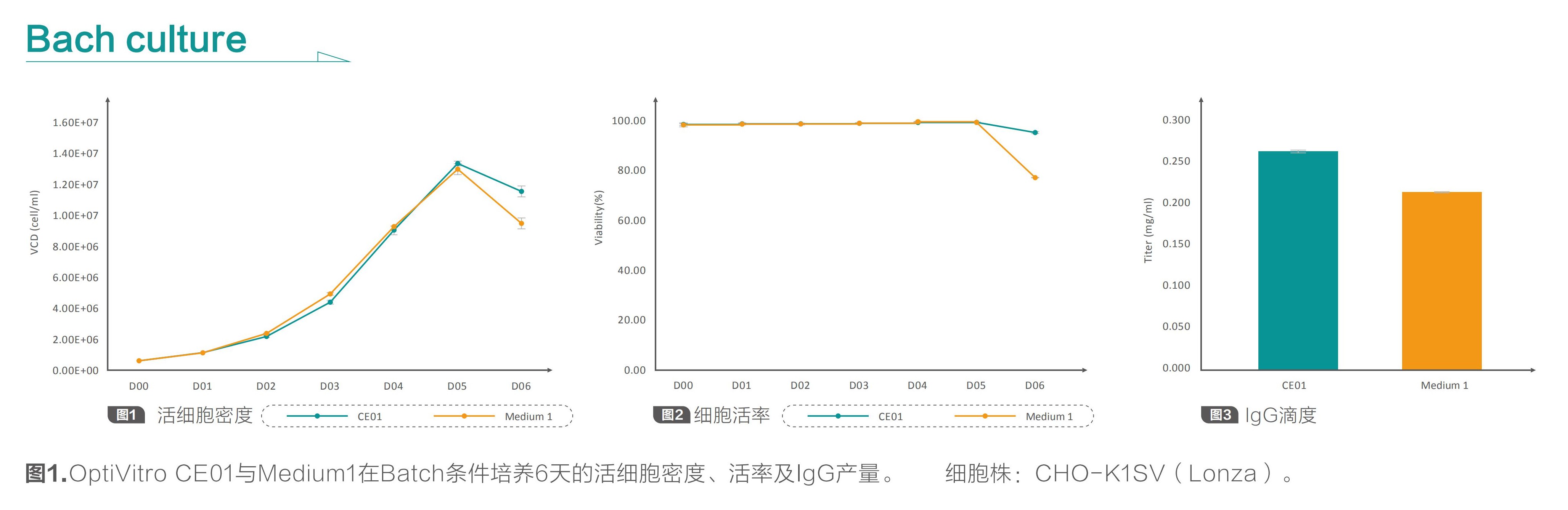 OptiVitro® CHO無血清基礎(chǔ)培養(yǎng)基CE01和OptiVitro® CHO 補料培養(yǎng)基CS01α/CS01β是經(jīng)過特殊設(shè)計開發(fā)的全新一代不含有任何動物性來源成分的、無蛋白/多肽的、化學(xué)成分明確的無血清培養(yǎng)基,適用于多種中國倉鼠卵巢細胞(CHO)的高密度、高活率、大規(guī)模的懸浮培養(yǎng),可實現(xiàn)蛋白產(chǎn)物的高滴度表達。