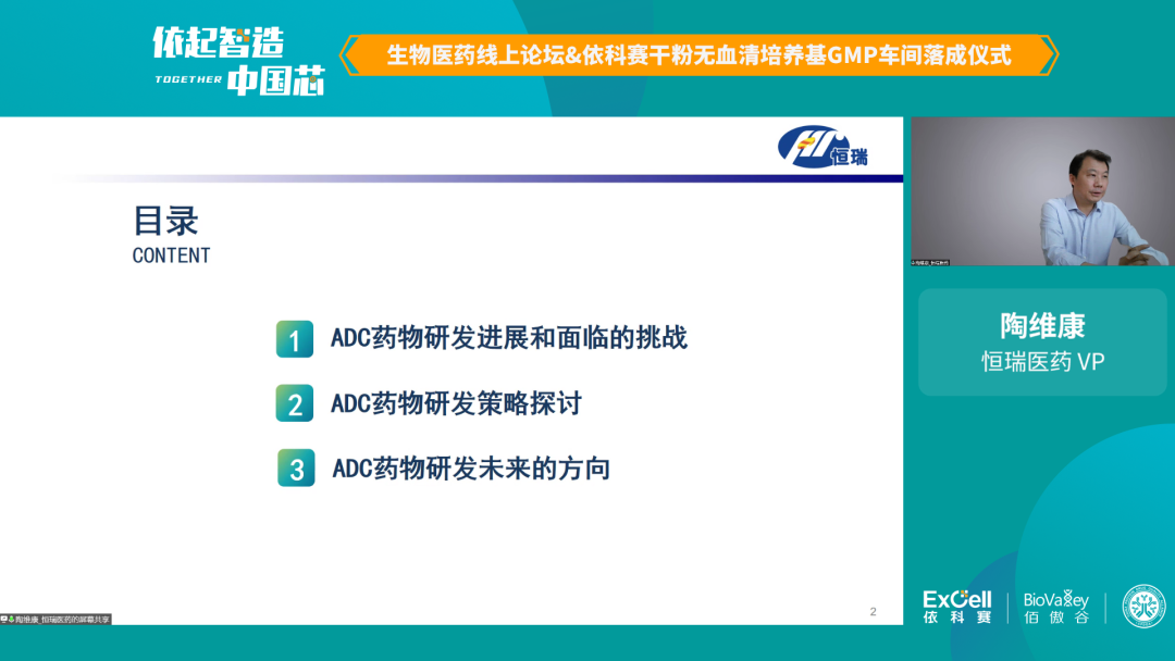 各嘉賓聚焦行業(yè)熱點(diǎn)話(huà)題,為大家?guī)?lái)精彩紛呈的演講報(bào)告,干貨滿(mǎn)滿(mǎn)。其中,恒瑞醫(yī)藥VP陶維康帶來(lái)主題為《ADC藥物研發(fā)進(jìn)展》演講報(bào)告。陶總從ADC藥物研發(fā)進(jìn)展及面臨的挑戰(zhàn)、ADC藥物研發(fā)策略和探討及ADC藥物研發(fā)未來(lái)的方向三個(gè)方面,向大家詳細(xì)解讀了ADC藥物領(lǐng)域的最新進(jìn)展。
