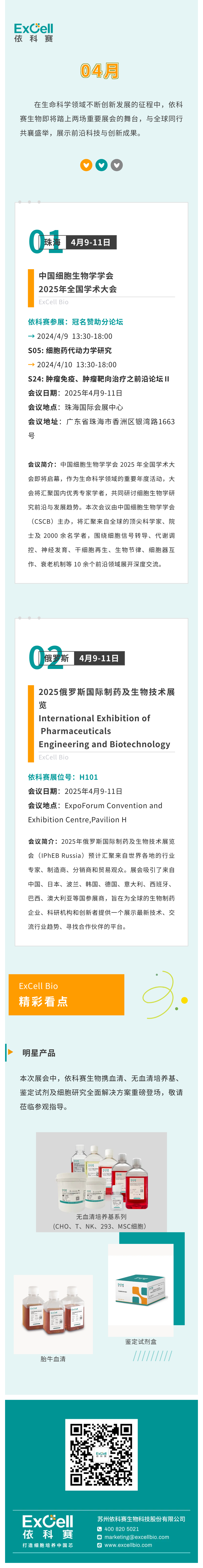 閃耀海內(nèi)外 | 依科賽邀您參加2025細胞生物學大會和俄羅斯國際制藥及生物技術(shù)展覽
